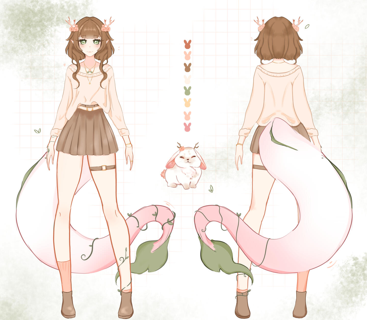 On the first night of spring, as winter’s breath finally loosened its grip on the world, the heavens ignited in a magnificent meteor shower. Countless stars streaked across the sky like silver fire—but one was no mere meteor. One brilliant star broke from the firmament and fell gently into a blooming peach orchard, cradled by moonlight and petals.Where the star kissed the soil, the earth stirred. From that sacred place sprouted a small, radiant plant, its leaves shimmering with celestial warmth. In time, it bloomed into a single pink flower, unlike any the world had ever known. Within its petals lay a newborn—tiny and fragile, with soft pink and green scales, bearing the unmistakable features of a dragon.No one had knowledge of her origin. Whether she was a gift, a guardian, or a wandering spirit given form, no one could say.As the dragon spirit grew, so too did her bond with the land that had birthed her. The orchard became her sanctuary, and the creatures who dwelled there her family. She befriended the wild rabbits and jackalopes that nested among the roots of the peach trees, and in time, they welcomed her as one of their own. It was they who named her Maisie.Maisie watched over them through the turning seasons. The orchard thrived beneath her gentle presence, but no one knew why the orchard thrived in her presence. Not even herself.Yet as seasons passed, curiosity stirred in Maisie’s heart. The world beyond the orchard’s edge whispered to her—of shadowed forests, swampy waters, and even distant realms unseen. One morning, with the dawn just breaking, she gathered what little she owned and prepared to leave her home behind.As she reached the forest’s edge, a familiar rustle stopped her. From the underbrush hopped Clover, one of the jackalopes she loved most. Refusing to be left behind, Clover declared his wish to see the world beyond the orchard and to stand beside Maisie on whatever path awaited her. With a soft smile, Maisie agreed—and together they stepped into the unknown.Through their travels, Maisie awakened to the magic that flowed within her. She learned to soar through the skies without wings, to slip silently beneath deep waters, and to veil herself from sight when fear took hold. Life even bent gently to her will—flowers blooming in her wake, rivers answering her call. She discovered so much about herself and the power she held, but still had so many questions as to why she held these gifts. Where did they come from? Why did she have them?Her journey carried her beyond forests and valleys, into places where the world thins—hidden realms and lands untouched by time.Yet for all her growing power, one question followed her always.Who was she, truly?Born of a falling star, raised by earth and beast alike, Maisie continued her journey seeking the truth of her origins—wondering if somewhere in the vastness of the planes, a family waited, longing for the child who fell from the sky.Present day: Maisie has made a more permanent home deep in swampy waters. When she is not out adventuring with Clover she is usually baking, scavenging for shiny rocks, or playing video games. How did she get access to video games? Well, she may have found a console or two in her travels.[Lore is being continued/being worked on <3]